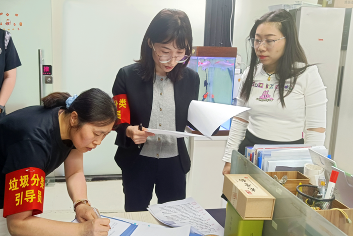 在北搪公司黨委的領(lǐng)導(dǎo)下,公司建立垃圾分類專員檢查機制,定期對各項目、各區(qū)域的垃圾分類容器設(shè)置是否合理、清運合同(協(xié)議)是否簽訂、清運臺賬建立是否規(guī)范及宣傳引導(dǎo)是否到位等日常管理情況進行監(jiān)督檢查,發(fā)現(xiàn)問題,立即督促整改,不斷提高生活垃圾分類的自覺性、準確率。同時號召廣大黨員結(jié)合“黨員雙報到”“桶前值守”等活動,積極投身所屬社區(qū)生活垃圾分類志愿服務(wù)活動。