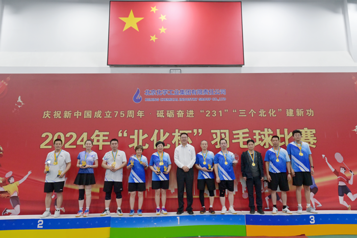 9月24日,北京化工集團2024年“北化杯”羽毛球決賽,在來自各單位的11支代表隊歷時一周激烈角逐后隆重舉行。北京化工集團黨委書記、董事長陳宇到場為選手們加油助威,并為獲獎選手頒獎。