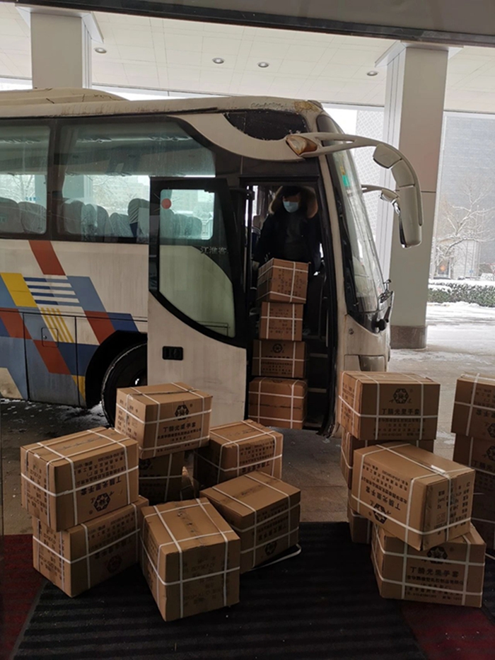 突如其來(lái)的疫情讓白云杉立即取消出京返鄉(xiāng)計(jì)劃,從大年初一起就一直奮戰(zhàn)在銷售一線,組織全體銷售人員,全力保障手套的銷售配送。