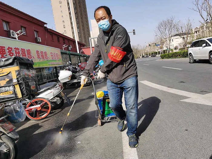 社區(qū)防疫值守工作是我們國(guó)家疫情防控的重要手段之一,消殺工作也是對(duì)社區(qū)值守人員、進(jìn)出居民健康防疫保障的有效舉措。為了保證消毒效果,我每天到崗后,都會(huì)第一時(shí)間進(jìn)行消殺。小到社區(qū)出入口的消毒腳墊,大到返京人員必經(jīng)的登記崗?fù)ざ际嵌ㄆ谙麣⒌闹攸c(diǎn)區(qū)域。還有卡口執(zhí)勤地面,乃至外賣電動(dòng)車的停放區(qū)我都要讓我的“戰(zhàn)友”光顧一遍。