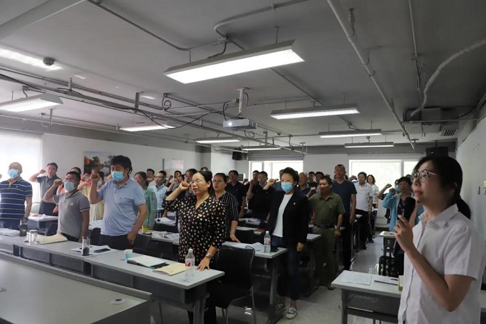 參加培訓的黨支部書記面對鮮紅的黨旗,莊嚴地舉起右手,黨旗前重溫入黨誓詞,“我志愿加入中國共產黨……”一句句誓詞鏗鏘有力,聲聲震耳。這是初心使命的再宣示,這是接續奮斗的再出發,更加明確了奮勇拼搏的使命責任,要為打造創新型企業集團作出積極貢獻。