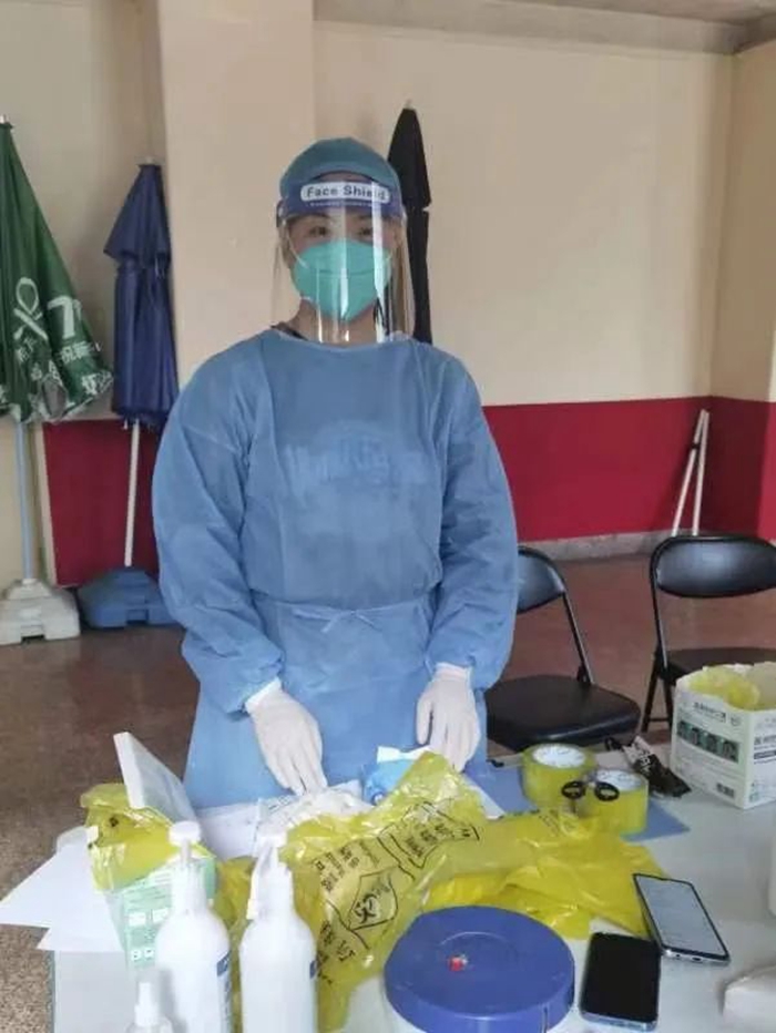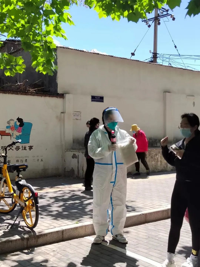 截至5月中旬,我已參加社區(qū)志愿服務(wù)8天,期間由于長(zhǎng)時(shí)間身著防護(hù)服連續(xù)工作,身體出現(xiàn)了脫水狀況,但僅休息一日后,繼續(xù)奔赴社區(qū)防疫“戰(zhàn)場(chǎng)”。