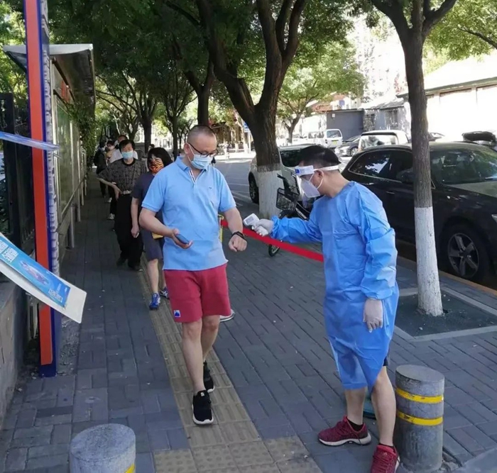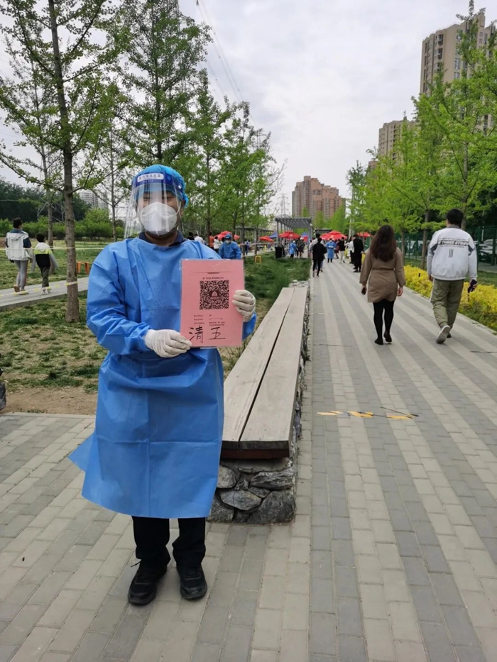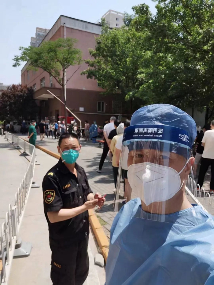5月的天氣,溫度說(shuō)升就升,每天2次4個(gè)小時(shí)的防護(hù)服穿下來(lái),下崗時(shí)每每全身濕透,但我一點(diǎn)也不后悔,看著手機(jī)里每次錄入600人、700人、800人等的信息時(shí),內(nèi)心升起一種無(wú)比的自豪,北京全員核酸檢測(cè)里有我的一份汗水。