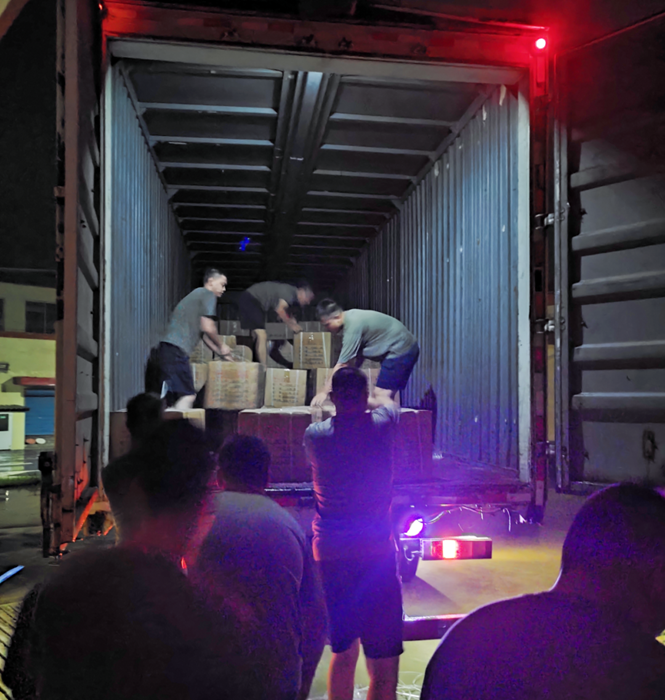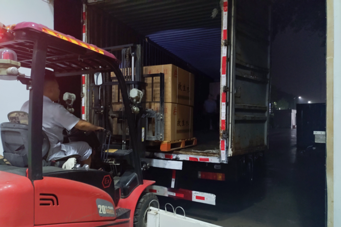 命令如山,華騰化工倉儲管理部共產(chǎn)黨員朱雨、劉寶玉、張月婷立即聯(lián)合公司值守人員安全保衛(wèi)部共產(chǎn)黨員劉兵、隋紅賓緊急集合,冒雨備貨裝車。僅用時4小時就完成全部物資的裝車。
