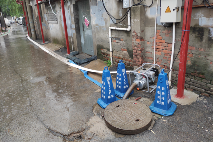 7月29日,在暴雨來襲時刻,北搪公司領(lǐng)導(dǎo)班子和干部職工連夜值守重點點位。大郊亭3號院是老舊平房宿舍區(qū),地勢低洼,也是朝陽區(qū)防汛重點點位。為應(yīng)對此次強度大持續(xù)時間長的極端暴雨天氣,公司在3號院安裝了4臺汽油排水泵、4臺小型電器排水泵,鋪設(shè)排水管線800米,準(zhǔn)備沙袋50個,清理排水雨篦子9個,由于思想高度重視、前期準(zhǔn)備工作充分,3號院平安度過這輪強降雨。