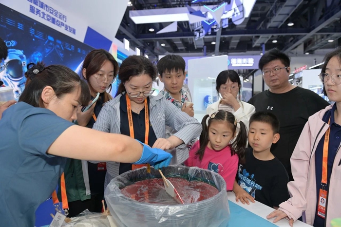 在展位現場,有的觀眾對于展示的儲氫瓶內膽專用材料高度關注,并有強烈的合作意愿,有的觀眾對展示的軟包裝膠黏劑主動提出市場開發合作意向,還有很多觀眾帶著孩子逐一學習觀摩展出的化工領域創新產品。可以說,化工集團的主題展位既是商業合作的溝通交流平臺,又是了解化工、學習知識的科普教育平臺。