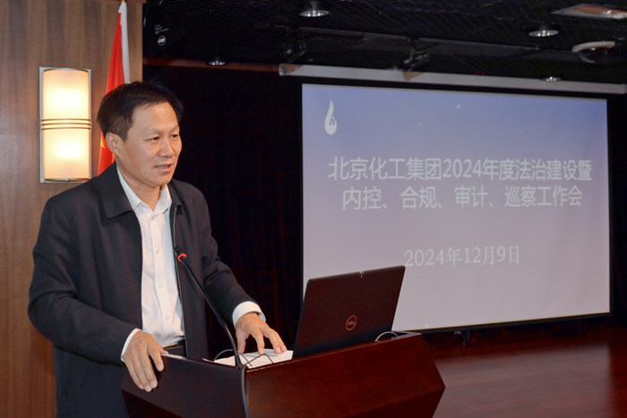 12月9日下午,北京化工集團召開2024年度法治建設暨內控、合規、審計、巡察工作會,黨委書記、董事長陳宇作總結講話,副總經理李效軍主持會議。