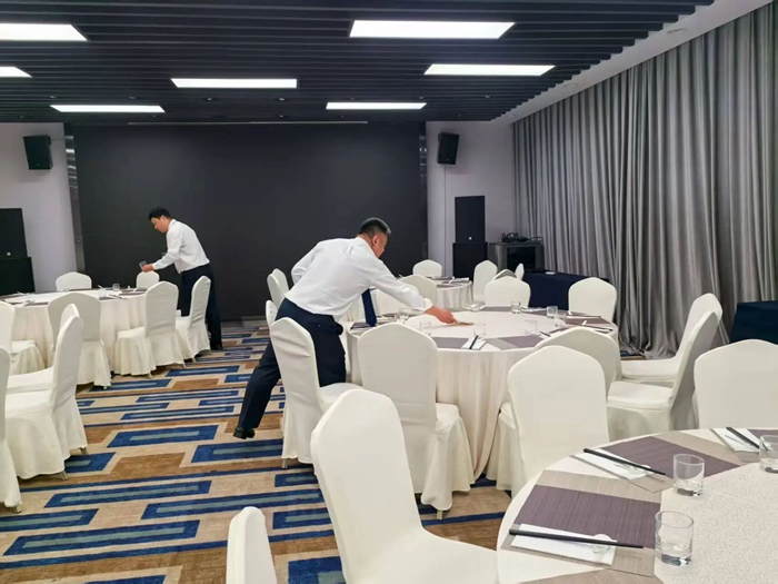 酒店前廳部作為接待窗口,提前完成房態(tài)梳理與入住流程優(yōu)化,保證了學(xué)警團隊的快速、有序入??;餐飲部精心籌備,科學(xué)配餐,確保每日膳食營養(yǎng)均衡、供應(yīng)及時;安保部則24小時值守,加強巡邏與進出管理,保障住宿環(huán)境安全無憂。許多員工主動加班加點,堅守崗位,在細節(jié)處體現(xiàn)用心,于細微處傳遞溫暖,給學(xué)警團隊的領(lǐng)導(dǎo)和學(xué)員留下了美好的印象,充分展現(xiàn)了華騰美居酒店“賓客至上”的服務(wù)理念和團結(jié)協(xié)作的企業(yè)精神。