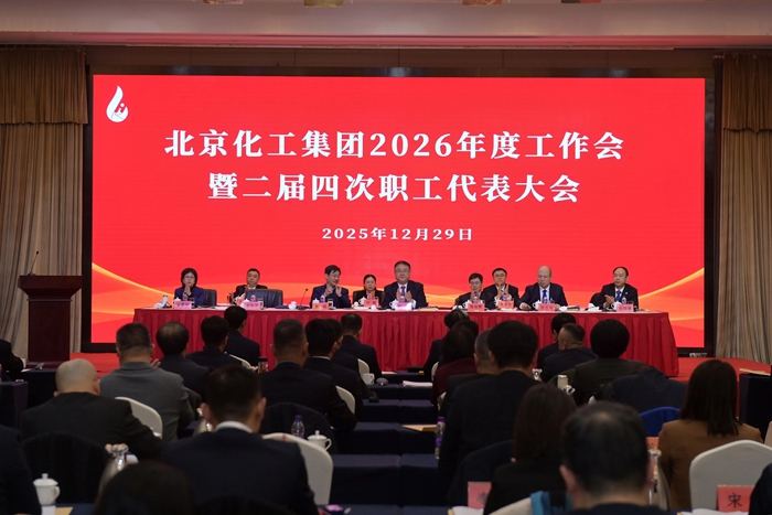 12月29日,北京化工集團召開2026年度工作會暨二屆四次職工代表大會,黨委書記、董事長陳宇以《堅持“231”戰略布局和“三個北化”建設不動搖 奮力書寫集團公司“十五五”時期高質量發展的嶄新篇章》為題作總結講話,黨委副書記、董事、總經理楊旭輝以《砥礪收官“十四五” 擘畫啟航“十五五”——為打造國內領先國際知名的創新型企業集團而奮斗》為題作工作報告,黨委常委、副總經理韓寶海主持會議。