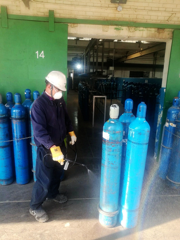 疫情大大增加了配送工作難度,配送員要全副武裝,穿上防護服、戴上防護鏡和防護口罩。每次配送前后,都要分別在公司和醫院對氧氣鋼瓶和車輛進行消毒處理,以確保醫用氧在生產、運輸過程中始終處于絕對安全狀態。