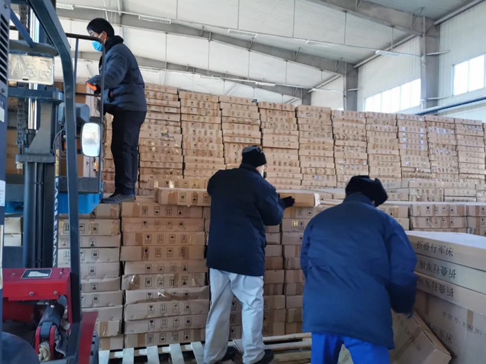 1月份,北京遭遇上世紀(jì)六十年代以來的極寒天氣,空曠的庫房溫度幾乎與室外相同,職工們的手腳被凍僵,但大家有的蹬上兩雙羊絨襪子,有的在身上、腳底貼上暖貼繼續(xù)奮戰(zhàn)在現(xiàn)場(chǎng)。有時(shí)午飯時(shí)間剛到,正好貨車也到了,此時(shí)沒有人會(huì)去吃飯,大家不約而同地奔向貨車,在卸完這趟車后才端起已經(jīng)發(fā)涼的飯盒……
