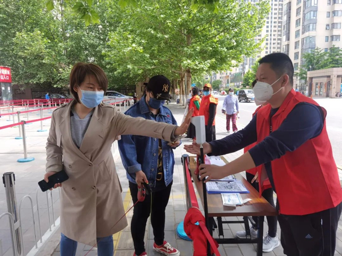 我雖然在所有工作人員中年紀(jì)最小,但各項(xiàng)工作完成效率總是居于前列,因此還得到了社區(qū)同事和居民的贊揚(yáng)。在與社區(qū)居民的接觸過(guò)程中,我對(duì)居民的情況也逐漸了解了。當(dāng)身體不便的老幼病殘等人員來(lái)檢測(cè)時(shí),我會(huì)安排他們走快捷通道,并時(shí)時(shí)提醒他們注意腳下,保證他們安全完成檢測(cè)。