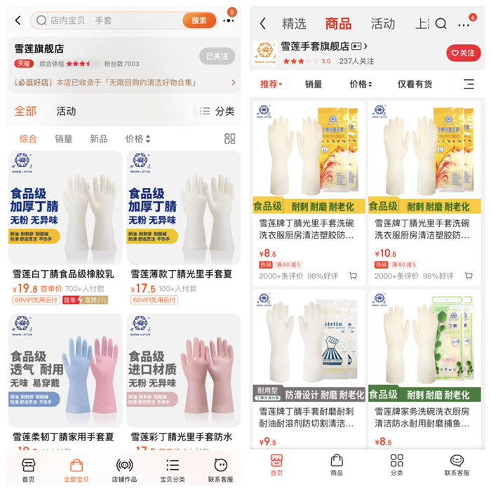原來,華騰橡塑相當(dāng)一部分訂單來自為其他品牌生產(chǎn)貼牌產(chǎn)品。鼎盛時(shí)期,市面上常見的某潔、某雅的近七成手套產(chǎn)品都來自華騰橡塑的生產(chǎn)線。激烈的行業(yè)競爭,使得代工貼牌訂單的利潤空間越來越小。意識到這個(gè)問題后,華騰橡塑加大了品牌建設(shè)的投入,適時(shí)推出了自有品牌“雪蓮”、“北瑞”。