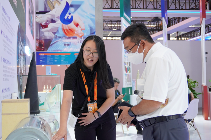 展屏下面的展臺(tái)上,醫(yī)用氧、PBT等高端工程塑料產(chǎn)品、高端乳膠制品、食品級(jí)膠黏劑、精細(xì)專用化學(xué)產(chǎn)品,還有北京市工業(yè)技師學(xué)院展示的第43屆、第44屆世界技能大賽獲獎(jiǎng)選手的訓(xùn)練作品……一件件代表著北京化工集團(tuán)服務(wù)首都城市發(fā)展,融入科技創(chuàng)新的產(chǎn)品,正展示著化學(xué)的獨(dú)特魅力。