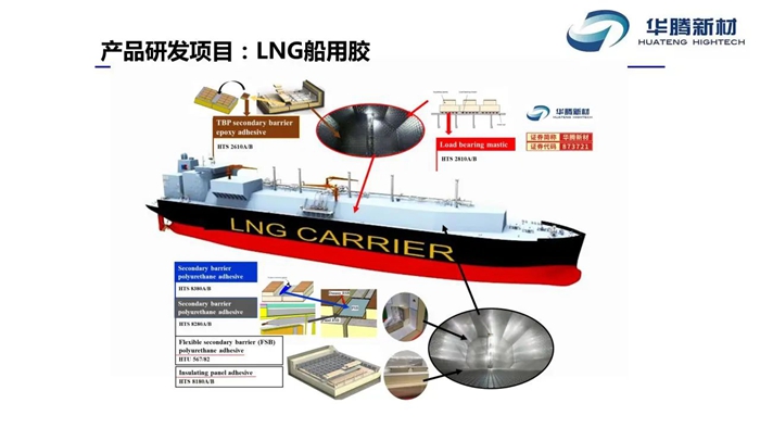“十四五”期間,華騰新材在深耕傳統膠粘劑市場基礎上,直面LNG船用膠這一“卡脖子”技術難題,以高端新材料“破題”為抓手,以產業迭代為目標,將LNG船用膠作為解決自主替代難題,大膽突破,開拓新市場的重點科研項目。2023年,經過科研人員多年全力攻關,華騰新材LNG船用膠產品取得重要突破,其中絕緣板用聚氨酯膠粘劑成功通過法國GTT公司認證,并順利投入商業化生產。