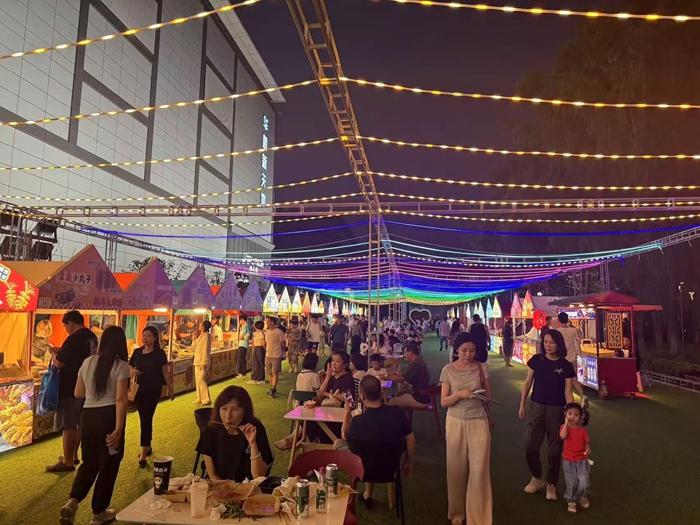 自夜市開啟以來,經(jīng)濟(jì)效益持續(xù)向好。華騰新天地商場客流量同比大幅增長,親子家庭消費(fèi)占比超過 60%。夜市中的市集匯聚了美食、潮玩等幾十家商戶,周末更有精彩的節(jié)目演出,現(xiàn)場人氣高漲,成為勁松地區(qū)打卡的熱門地標(biāo)。