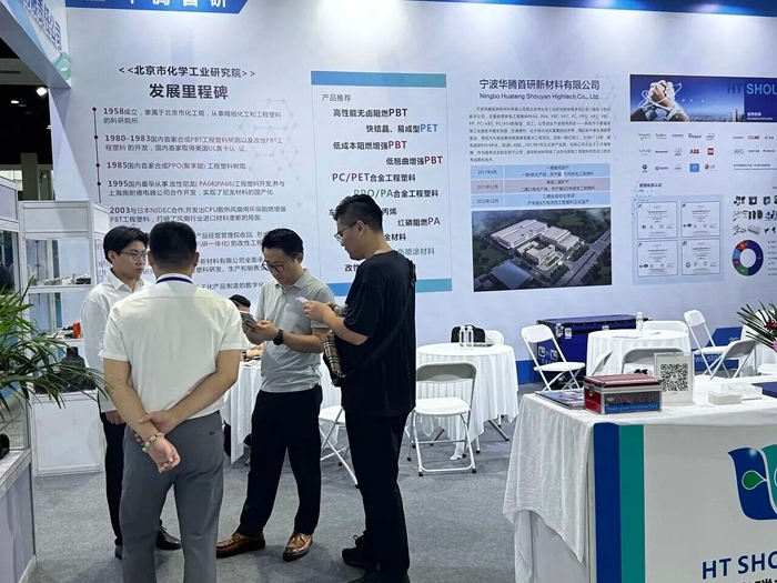 兩次展會上,在華騰首研展位,工程塑料行業專家和客戶紛紛駐足,他們圍繞材料研發、終端應用等方面與公司人員展開交流。華騰首研則聚焦客戶需求,積極提供定制化解決方案,并尋求多方合作,加速自身技術迭代,提升生產服務效能。